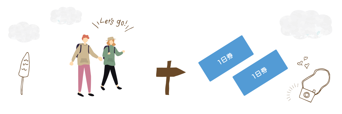 2人で日帰りで1日だけ参加する方 → 1日券を2枚