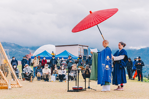 雪乞CAMPの会場では、長野県須坂市にある満龍寺副住職の高津研志氏を迎えて雪乞い祈祷を行います。